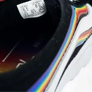 Give yourself a raise with the Vans Old Skool Sentry Pride black and white platform shoes! This Old Skools have a modernized look and an uplifting message to send. The laces are outfitted with colorful scripts reading "love" in languages abound, while the sidewalls, beside the leather side stripe, have a screen-printed rainbow around it. Plus, on the technical side, they have a Wafflecup outsole for flexibility and impact support and a UltraCush insole for comfort.