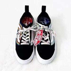 NIB Vans Old Skool Sentry Pride Black & White Platform Shoes Sneakers