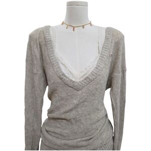 Hollister Vintage Grey Cream Knit Long Sleeve Vneck