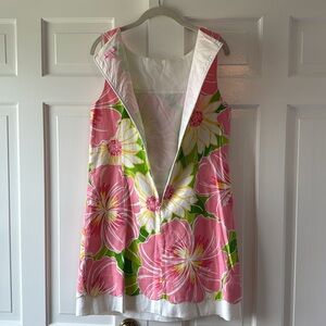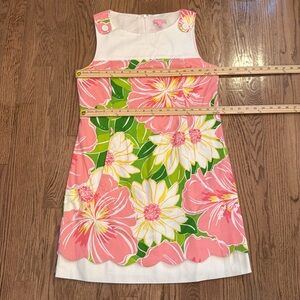 LILLY PULITZER LARGE FLORAL SHEATH DRESS PINK GREEN WHITE SIZE 12 PREPPY COTTON