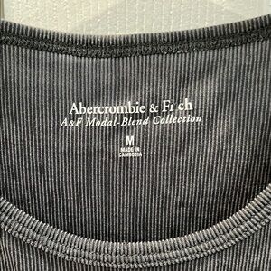 Fitted ribbed grey t-shirt from Abercrombie & Fitch size medium, two small catches on the front.