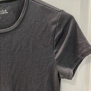 Abercrombie & Fitch Ribbed Grey Fitted Short Sleeve Tee