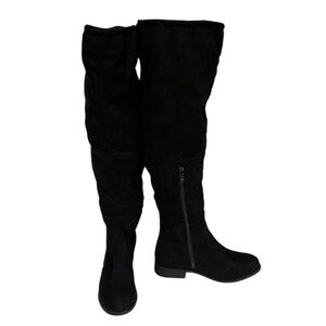 Size 7 NWOT Journee collection black over the knee boots with rounded toe, top drawstring, and 2” block heels. In new unused condition