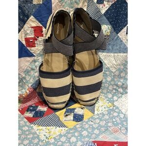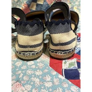 Lands' End Canvas Espadrilles Size 9.5 B Navy Blue Ecru Nautical Stripe Sandals