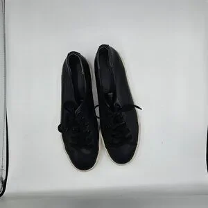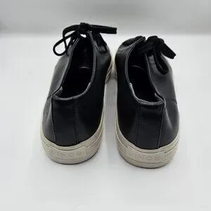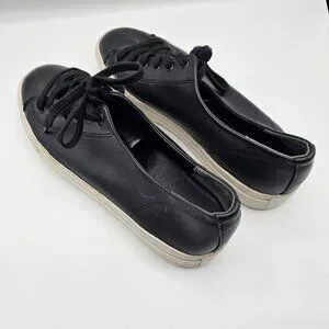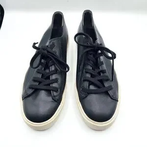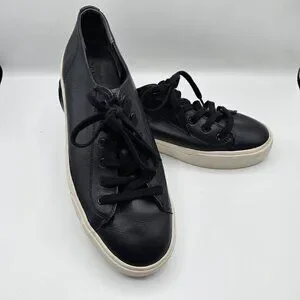 These sleek and versatile sneakers blend casual style with elevated craftsmanship. Made from supple black leather, they feature a classic lace-up design, clean lines, and a minimalist silhouette perfect for everyday wear. Whether paired with jeans, dresses, or joggers, these shoes deliver comfort and effortless style in every step. Gently worn and in excellent condition. EUC