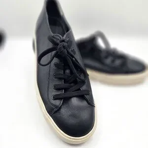 VINCE Women's Black Leather Lace-Up Sneakers, Size 9.5.