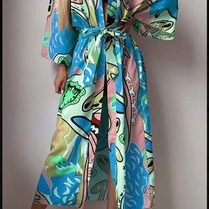 NWT Womens Stylish Kimono Robe with Vibrant Belt Beach Cover-Up