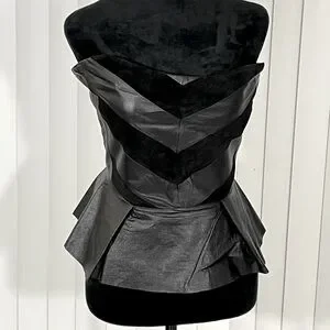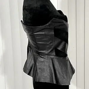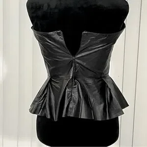 BLANC NOIR Leather Suede Sleeveless Peplum Bustier Top Sweetheart Neckline Black Size Small