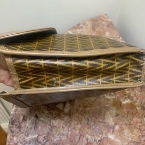 This elegant clutch from Mario Valentino showcases a sophisticated tan and brown color palette, perfect for adding a touch of class to any ensemble. Designed with a convenient wristlet, it offers both style and functionality for your essentials. Ideal for both casual outings and formal events, this clutch is a versatile addition to your accessory collection.