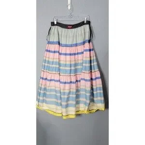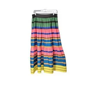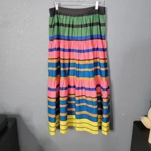 STAUD Skirt Sz 10 Formentera Stripe Sea Midi Cotton Striped Summer