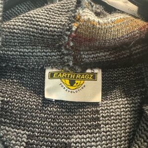 Stylish gray hooded jacket featuring a bold tribal pattern. Perfect for adding a unique touch to your wardrobe.