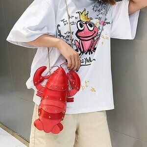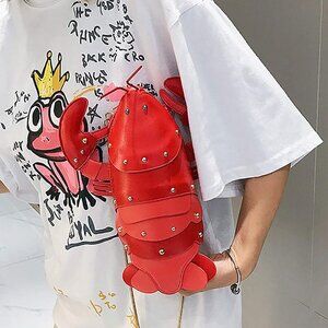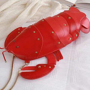 UNIQUE DESIGN - Unique 3D cute and fun crayfish purse, zipper crossbody bag design, decorate with rivet, light weight handbag, smooth zipper, buckled adjustable and detachable strap, stylish and fashion. 4 ways to carry it: purse/clutch/crossbody/shoulder bag. Convenient zipper closure, removable chain strap, unique and trendy PU leather animal shoulder bag for party or for daily use.