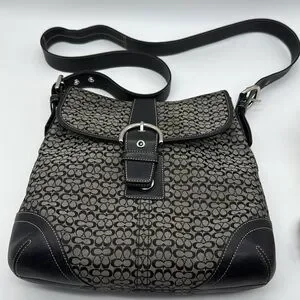 COACH VINTAGE SOHO JACQUARD Signature Black and Gray Patterned Women's Bag. Button snap closure with one small interior zipper pocket, open slot in back on the interior and one back exterior pocket. *FLAW* COACH HANG TAG IS MISSING. Plenty of space for all your essential items.