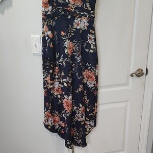 Chic Lulu's dress with vibrant floral design.High low and wrap around design. Features adjustable straps and a flattering fit. Ideal for stylish outings.