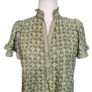 Max Studio Blouse Size XSmall Green Floral Ruffle Peasant Boho