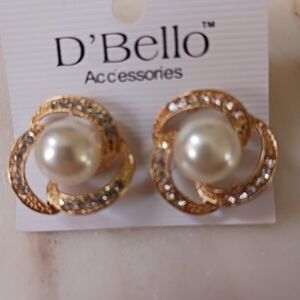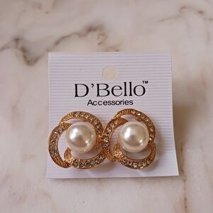 NWT D'Bello Faux Pearl Earrings With Cubic Zirconia Accents