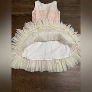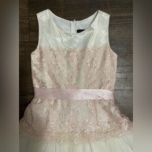 Luxury CHANTILLY Place Dress breathtaking Lace Drop Waist Tutu Ivory-Pink Sz 12. Pre-Owned