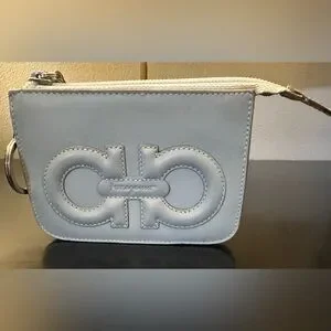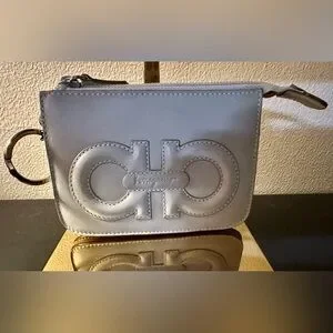 Salvatore Ferragamo blueish grey card case coin purse keyring.