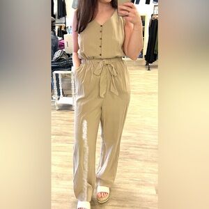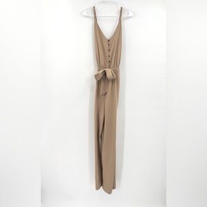 Easel Tan Jumpsuit with Tie-Waist and Relaxed Fit