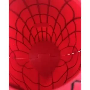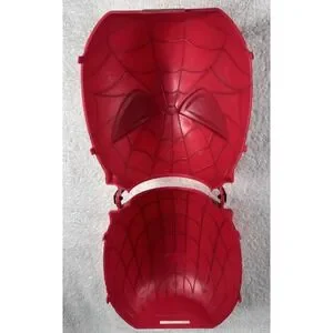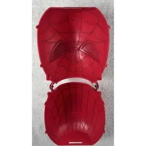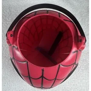 This is a Retro Original Spider-Man Folding Happy Halloween Candy Pail Bucket manufactured in 2006 by Disguise, Inc. It is made of plastic and features a red color. The candy pail is designed with a Spider-Man theme, perfect for Halloween. It is a collectible holiday item from the 2000-2009 time period, made in China. Divides into two pieces for easy candy removal or serving tray.