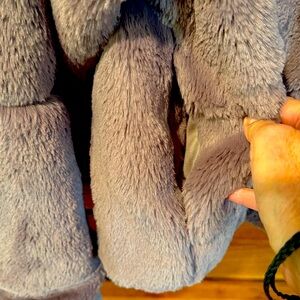 Zip-front faux fur bomber-style jacket. Super soft and fluffy, two hand-warmer pockets. In like-new condition.