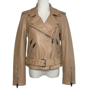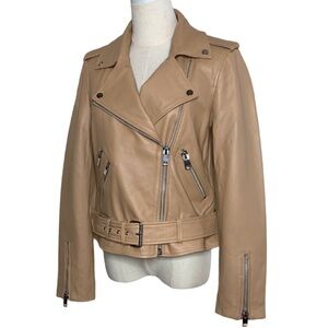 Walter Baker Allison Leather Biker Jacket Tan Latte Size M
