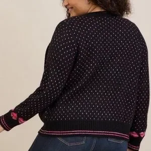 Torrid Cardigan Drop Shoulder V-Neck Button Front Sweater With Hearts Size 5X