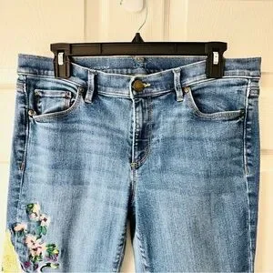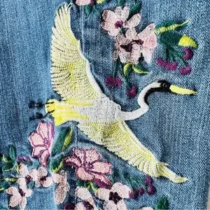 LOFT Modern Cuffed Crop Jeans Size 10 | Embroidered Floral & Crane Detail