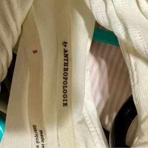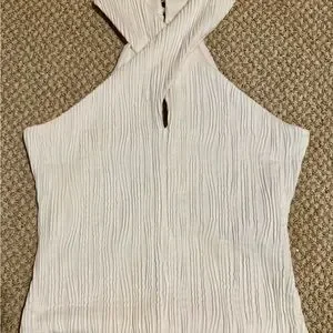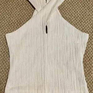 This chic tank top from Anthropologie showcases a ribbed texture and distinctive cut-out details, adding a contemporary flair to a timeless design. Made in a pristine white shade, it features a sleeveless silhouette ideal for sunny days. Its minimalist elegance ensures it pairs effortlessly with any outfit.