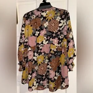 DR2 by Daniel Rainn Floral Peasant Women's 3/4 Sleeve Sheer Blouse