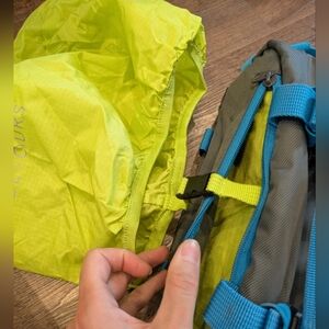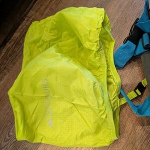 -bright yellow rain cover, cleverly hidden in a zipped compartment in the exterior bottom of the bag