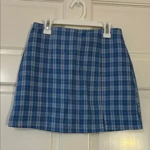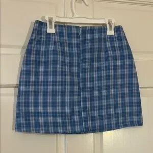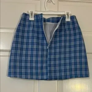 Stylish blue plaid mini skirt perfect for any occasion. Preppy.