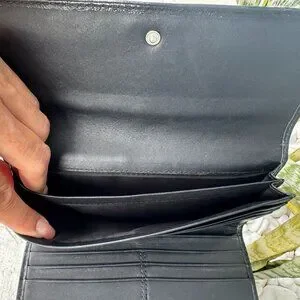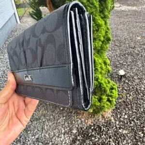 Excellent condition basically new, no callouts Coach signature pleated trifold check wallet has tons of space and pockets to keep all your credit cards to spend on Poshmark! Stylish Coach wallet. Features signature pattern and soft supple leather Sleek black trim. Perfect for essentials. Original price was $228. Steak of a Deal, open to REASONABLE offers.