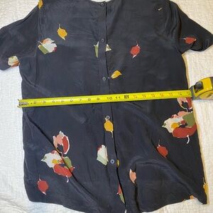 This Madewell blouse features a vibrant floral design and button details down the back. 100% silk. No flaws.