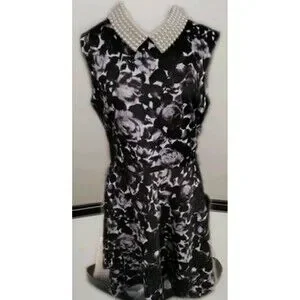 The Betsey Johnson Dress in size 12 features a stylish pearled collar and floral pattern, perfect for various occasions such as weddings, parties, and workwear. This sleeveless dress has a zip closure, a fit & flare style, and a knee-length hemline, making it ideal for summer, fall, and spring seasons. Made of polyester and spandex, the black and white color scheme adds a touch of elegance to the dress, making it a must-have for any woman's wardrobe.