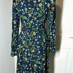 J. Jill Dark Blue Floral Long Sleeve Dress