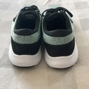 Stylish Nike sneakers for women. Features mint green upper with black accents. Comfortable and trendy design.