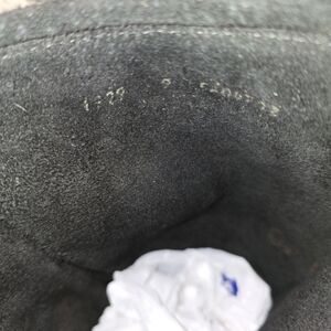 Minnetonka, black 100% Suede, rubber sole, Men's 9, lace up front, fringe border on top