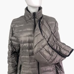 CALVIN KLEIN Detachable Hood Packable Down Puffer Jacket (Gray | Medium)