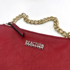 KENNETH COLE REACTION Pebbled Faux Leather Gold Chainlink Shoulder Bag (Red)