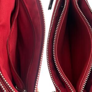 • 2 zipper pouches and one open pouch; interior zipper pouch