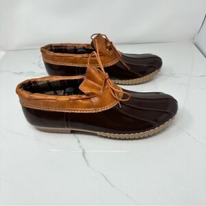 Like new flannel lined duck boots from Cape Robbin. They’re a size 10 and have no visible wear.