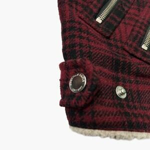 AEO Women’s Wool Flannel Sherpa Moto Jacket (Dark Red | Size S)