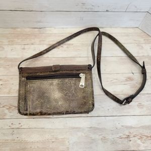 Patricia Nash Brown and Blue Floral Leather Crossbody Bag