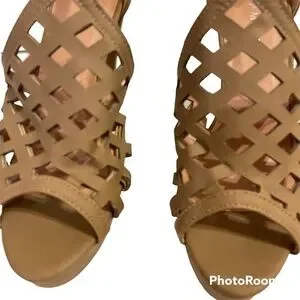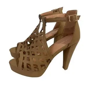 TOP MODA Bonica Tan Suede Open Toe Heels Shoes Sandals
