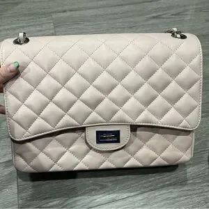 Borse in Pelle Large Crossbody Quilted Flap Bag Pale Pink