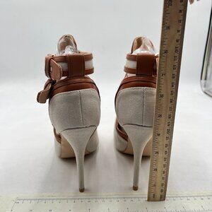 XYD Gainsboro-brown Peep Toe Sandal Ankle Booties Dual Buckled Straps Stiletto H