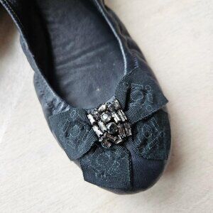 Dark Navy Ballet Flat Rhinestone Bow Size 10