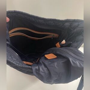 Chic quilted design. Spacious and stylish. Ideal for everyday use. Includes detachable nylon pouch and dust bag. Gently used. 34” from top of strap to bottom of bag. Bag measure 12” wide.