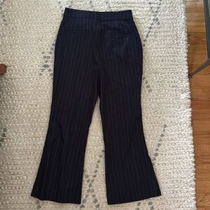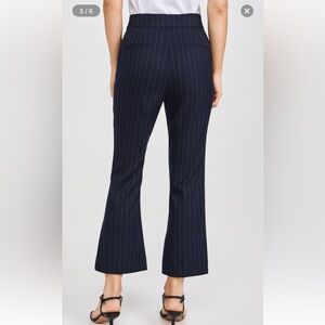 NWOT Favorite Daughter Phoebe pants. Kick flair cropped. Mid-weight, low-stretch twill fabric. Navy with white Pinstripe pattern. Hook-and-eye closures at waist, zip fly. Slant hip pockets and welt back pockets